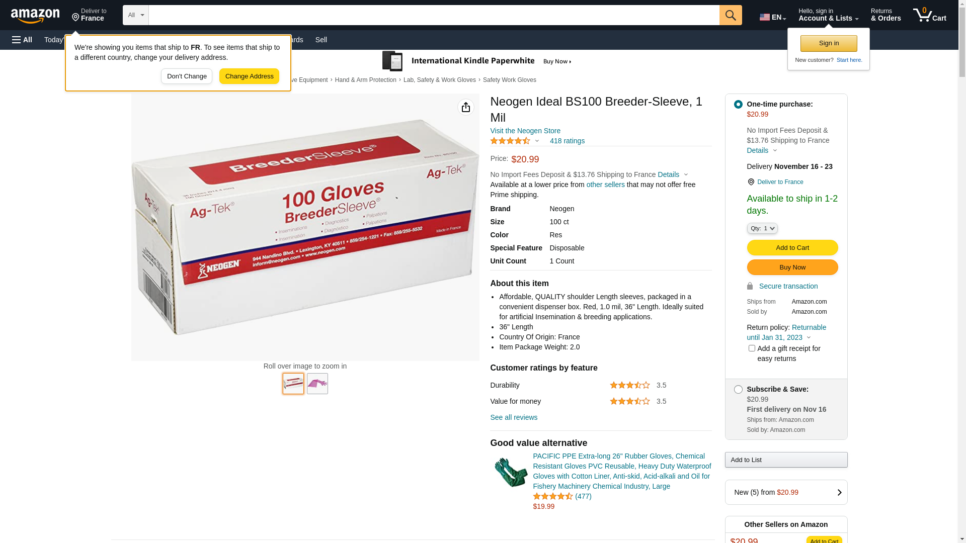 Neogen BS100 1 Mil 36 Inch Breeder Gloves One Size 100 Count (745009100664-2)