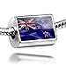 Sterling Silver Charm New Zealand 3D Flag - Bead Fit All European Bracelets , N