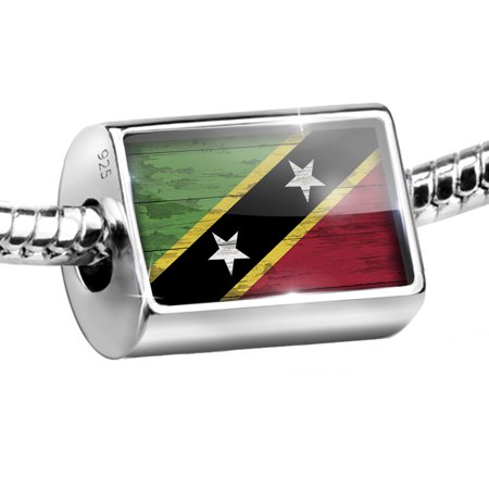 NEONBLOND Sterling Silver Bead Flag on Wood St. Kitts and Nevis Charm Fits All European Bracelets