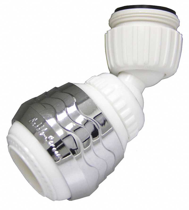 | Feature | Price For: Each Standards: NSF61 Finish: Chrome Thread Size: 15/16"-27 x 55/64"-27 Item: Swivel Sprays Type: Kitchen, Bubble Stream Flow Rate (GPM): 1.5 Country of Origin (subject to change): Taiwan |