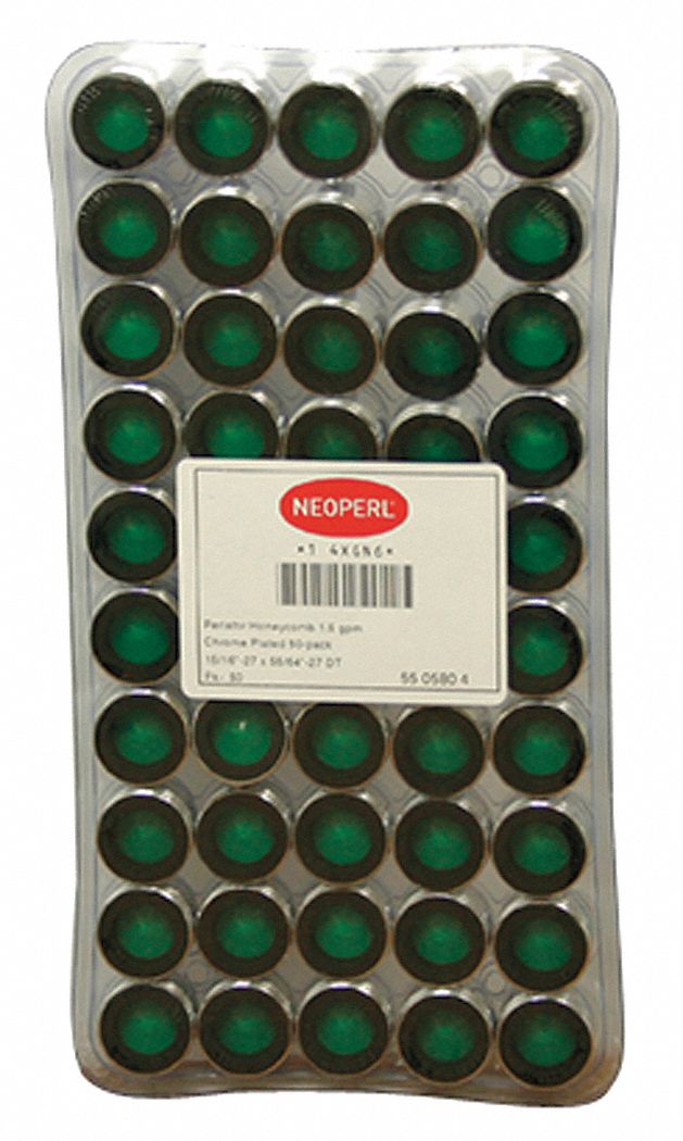 Aerated Outlet, Thread Size Type Dual, Thread Size 15/16 in - 27, 55/64 in - 27, Flow Rate 1.5 gpm, Flow Outlet Type Aerated, Chrome Finish, Standards NSF 61, Package Quantity 50