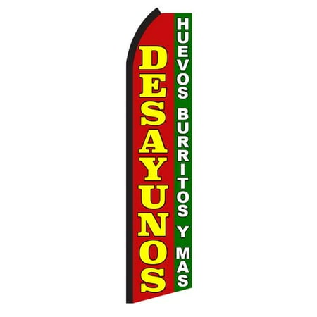 NOPL1402 <br /> <b>Features</b> <br /> <ul> <li>This flag is constructed from UV treated, lightweight, affordable polyester, balancing quality and affordability</li> <li>Graphics are imprinted using dye sublimation printing for fade resistance</li> <li>Graphics are visible on the reverse side</li> <li>Great way to advertise your company</li> <li>Primary Pattern: Desayunos</li> <li>Color: Red/Yellow/Green</li> </ul> <br /> <b>Dimensions</b> <br /> <ul> <li>Overall depth: 0.2"</li> </ul>