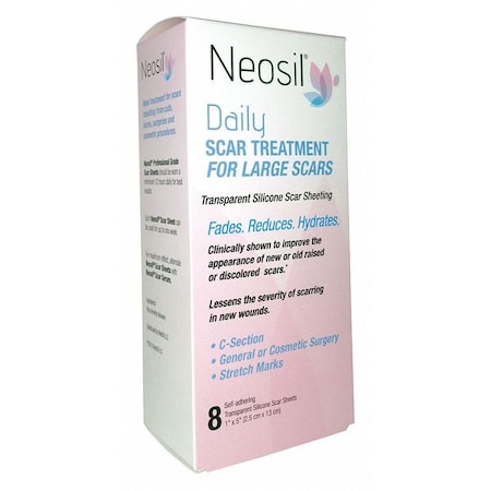 Neosil NEO-0203 Transparent Silicone Scar Sheeting for C-Section and Large Scars, 1" x 5" (Pack of 8)