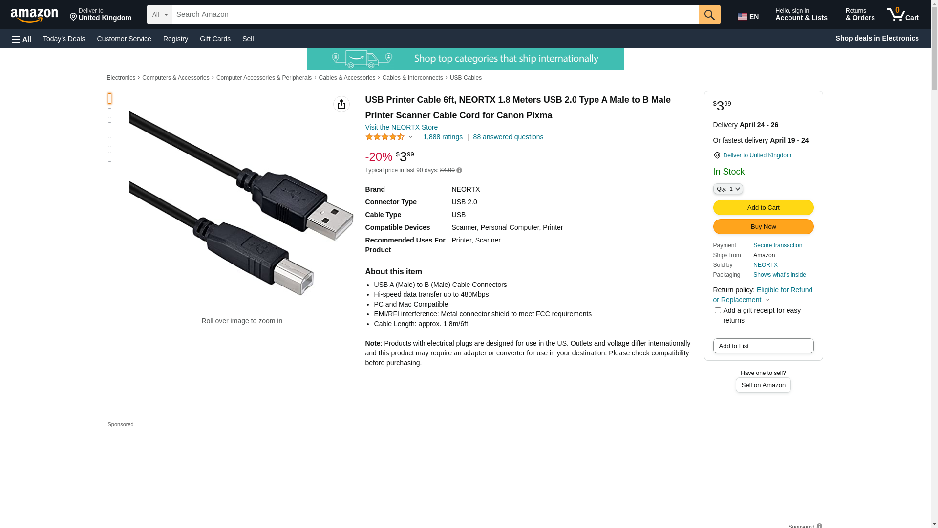 - USB A to USB B Cable for PC / Notebook / Printer / Digital Cameras / Scanners