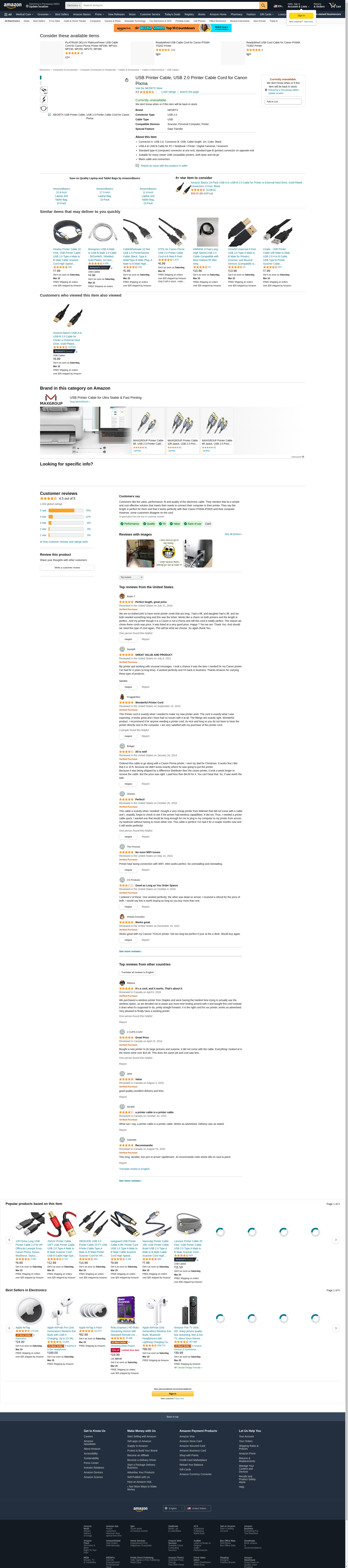 USB Printer Cable 6ft, NEORTX 1.8 Meters USB 2.0 Type A Male to B Male Printer Scanner Cable Cord for Canon Pixma: Maxedbuy.com