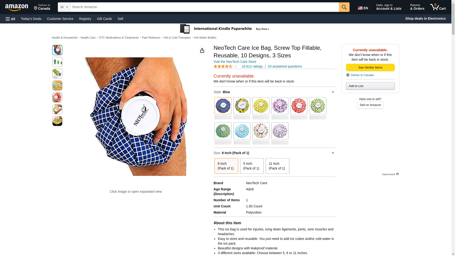 NeoTech Care Ice Bag, Screw Top Fillable, Reusable (Blue Design, 8 inch)