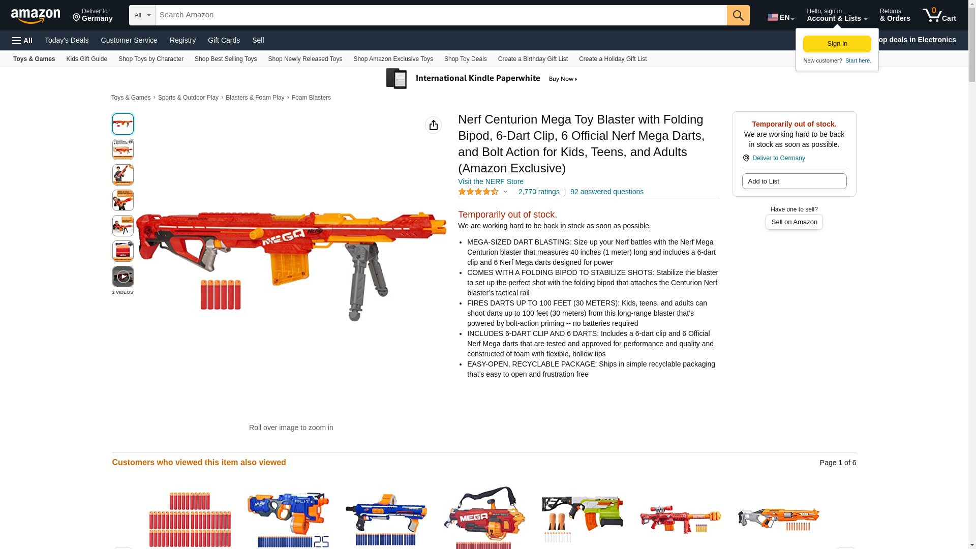 Nerf Centurion Mega Toy Blaster with Folding Bipod, 6-Dart Clip, 6 Official Mega Darts, & Bolt Action for Kids, Teens, & Adults, Gray, Regular (Amazon Exclusive): Maxedbuy.com