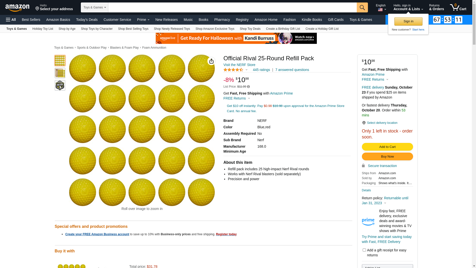 - Refill pack includes 25 high-impact Nerf Rival rounds