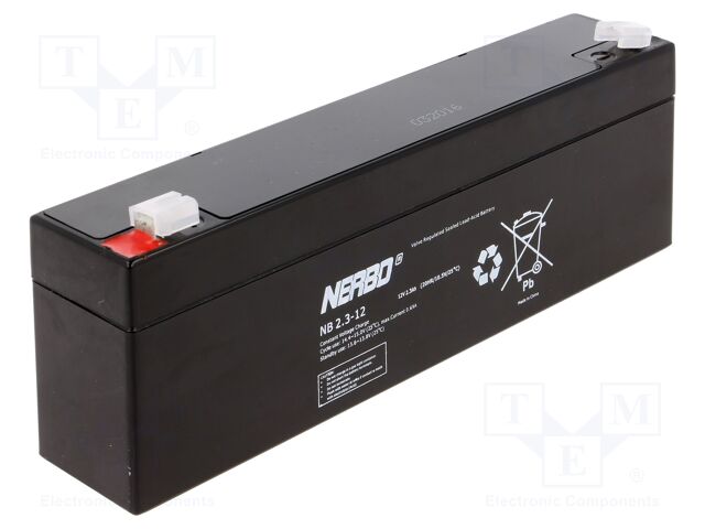 As an Amazon Associate, we earn from qualifying purchases. NERBO NB2.3-12 -AS | Re-battery: acid-lead; 12V; 2.3Ah; AGM; maintenance-free NERBO . NB2.3-12 -AS Gallery Attributes Brand name, Manufacturer name, Manufacturer, Attribute00NERBO Attribute01acid-lead Attribute0212V Attribute032.3Ah Attribute04AGM Attribute05maintenance-free Attribute06178x35x61mm Attribute075 years Attribute084,8mm connectors Attribute090.8kg Attribute10alarm systems, AttributeKey00Manufacturer AttributeKey01Type of rechargeable battery AttributeKey02Rated voltage AttributeKey03Capacity AttributeKey04Technology AttributeKey05Rechargeable batteries features AttributeKey06Body dimensions AttributeKey07Storage time AttributeKey08Leads AttributeKey09, Weight_AttribWeight AttributeKey10Rechargeable batteries application CategoryL1Power Sources CategoryL2Batteries, Rechargeable Batteries CategoryL3Acid Cells Extra Product NameNERBO NB2.3-12 -AS | Re-battery: acid-lead; 12V; 2.3Ah; AGM; maintenance-free Weight0.8 WeightUnitkg atoms, moq, multiple1 jsonUrlDatac5849b3b4089eb28afcd112f18b7f9d5. jsonUrlData2c60cfee5e12d60aa4229 keywordsNERBO, NB2.3-12 -AS, ACCU-HP2.3-12/NB, Power Sources, Batteries, Rechargeable Batteries, Acid Cells MPNNB2.3-12 -AS qtyInStock0 SKUACCU-HP2.3-12/NB snippetNERBO NB2.3-12 -AS | Re-battery: acid-lead; 12V; 2.3Ah; AGM; maintenance-fre Distributor offers SellerSKUMOQIn stockMultiplePrices TMEACCU-HP2.3-12/NB11