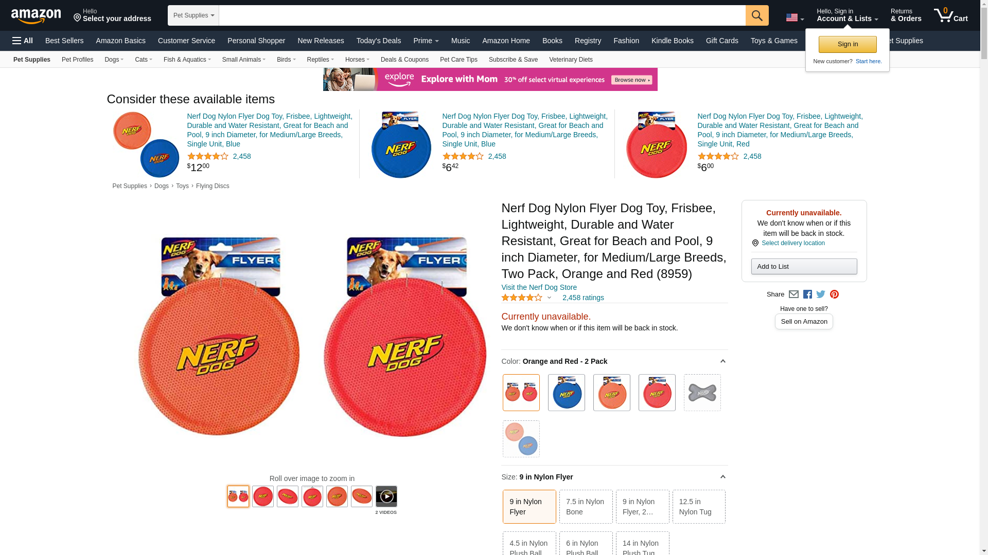 Nerf Dog Nylon Flyer Dog Toy, Flying Disc, Lightweight, Durable and Water Resistant, Great for Beach and Pool, 9 inch Diameter, for Medium/Large Breeds, Two Pack, Orange and Red (8959)