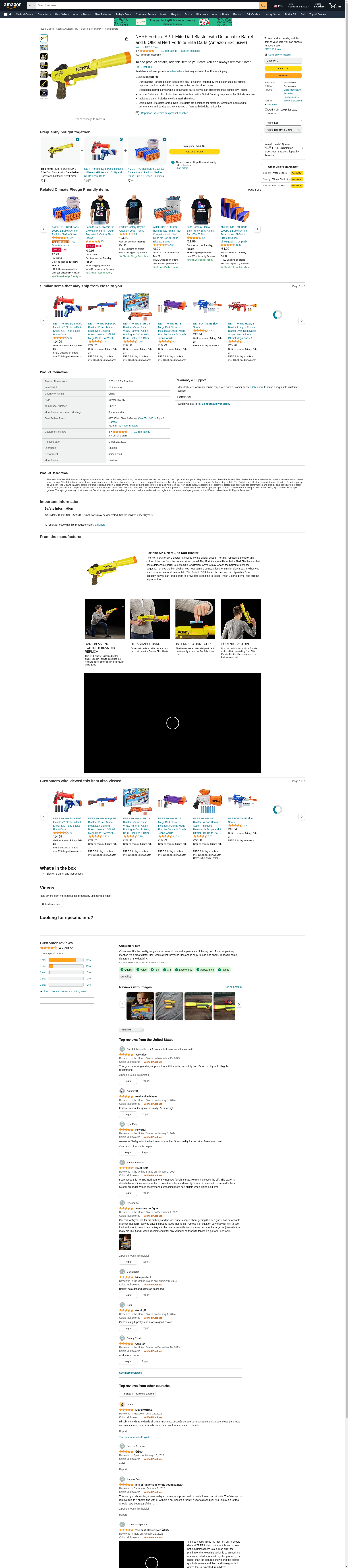 NERF Fortnite SP-L Elite Dart Blaster with Detachable Barrel and 6 Official Nerf Fortnite Elite Darts (Amazon Exclusive)