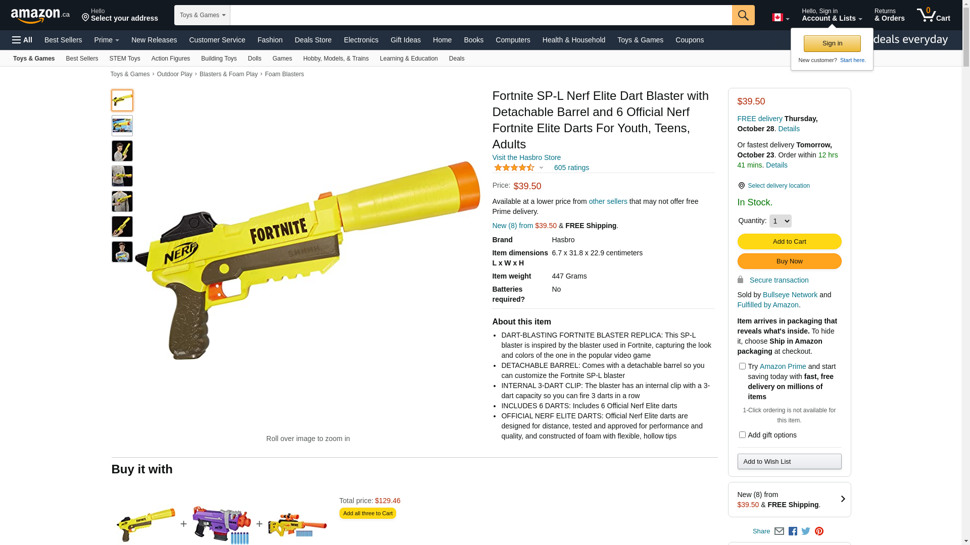- Dart-blasting Fortnite blaster replica: this spy-l blaster is inspired by the blaster used in Fortnite, capturing the look and colors of the one in the popular video game