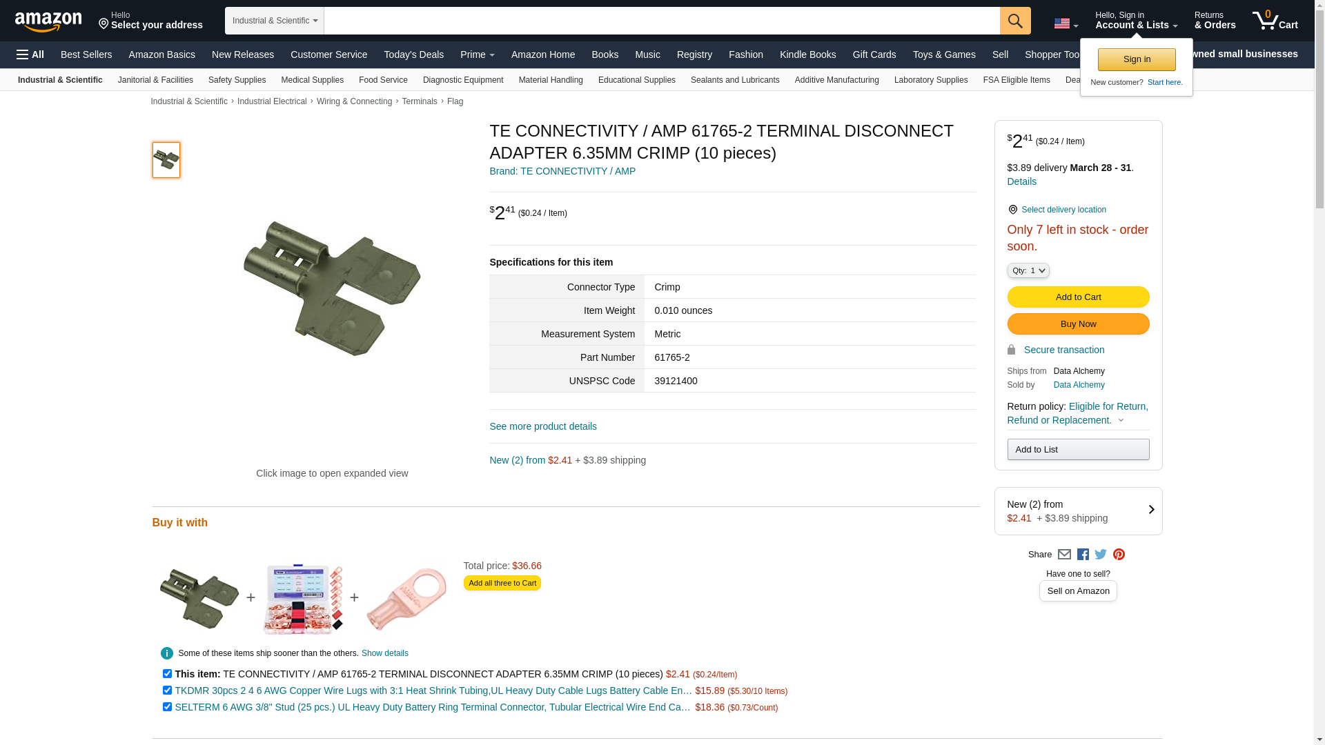 TE CONNECTIVITY / AMP 61765-2 TERMINAL DISCONNECT ADAPTER 6.35MM CRIMP (10 pieces)