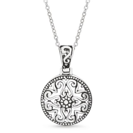 Oxidized Filigree Disc Pendant in Sterling Silver