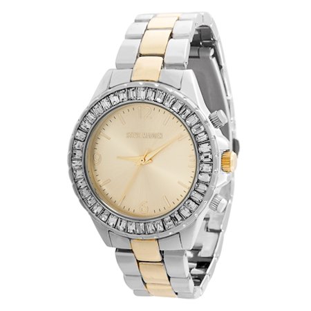 Ladies Round Case Baguette Bezel Two-Tone Alloy Band Watch