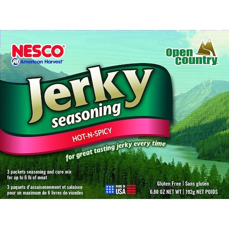 Jerky Spice Works – Hot and Spicy Flavor Seasoning. Pack of 3. Packaging may vary. Hot and spicy. 3 packets seasoning and cure mix for up to 6 lb of meat. Gluten free. Case of 3. Brand Nesco American Harvest. Capacity: 8.8 oz. Model BJH-6.