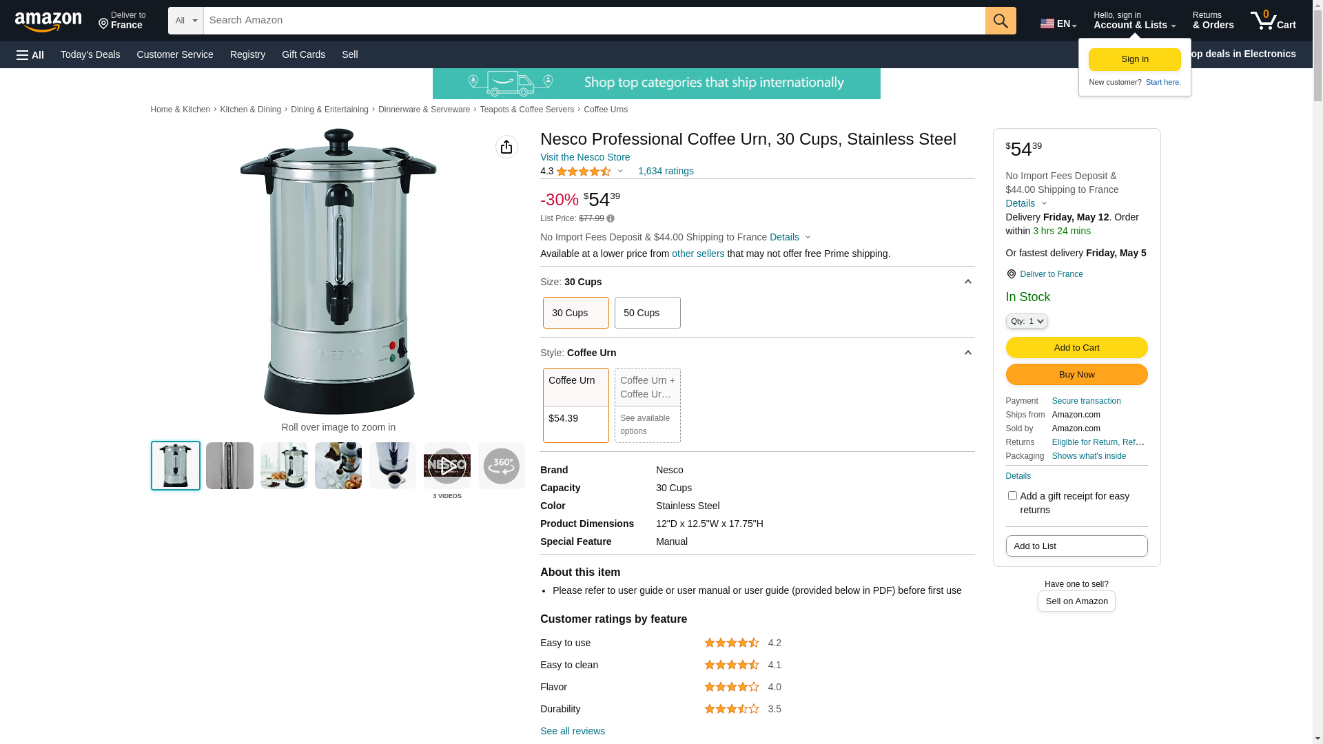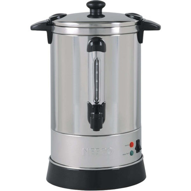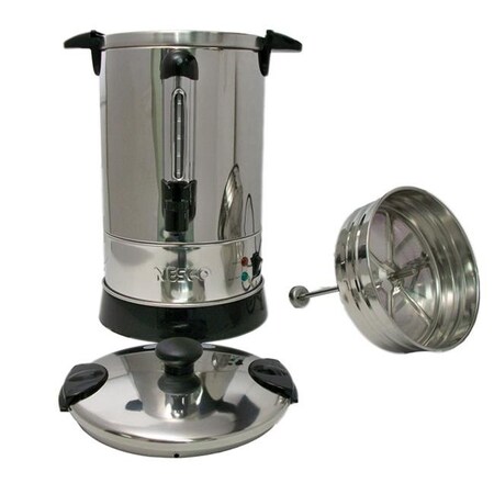 The Nesco 30-Cup Stainless Steel Coffee Urn easily allows you to make coffee for a large group. This urn makes up to thirty 5.7-ounce cups, while competitors only average 5.1-ounce cups. The stainless steel, double-wall insulated urn makes it easy for guests to serve themselves. Cool touch handles and a locking lid for peace of mind.