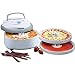 Nesco FD-75PR Snackmaster Pro 700 Watt Food Dehydrator... It's sleek, contemporary design In grey and marble color features a top mounted fan, 700 watts of drying power, and generates maximum speed and quality for dehydrating fruits, vegetables, beef jerky, and venison jerky. Helps dry food in hours, not days like ordinary food dehydrators. Makes delicious Beef Jerky even turkey jerky, and fish jerky. Make trail mix, homemade yogurt, apple snacks, banana chips, dried soup mixes, dried tomatoes, watermelon, cantaloupe, honeydew, mangoes, papaya and other dried fruits at a fraction of the cost. Make dried herbs and spices; also make potpourri and dried flowers for any occasion. FEATURES: The adjustable thermostat allows you to dry different foods at proper temperatures (95-160 degrees F), providing the flexibility to produce the best drying results. Top mounted fan and 700 watts of drying power generate maximum speed and quality for dehydrating fruits, vegetables, and jerky. Helps dry food in hours, not days like other food dehydrators. Expandable unit comes with 5 trays, but is expandable to 12 trays with optional Add-A-Trays. Opaque Vita-Save exterior helps block harmful light which destroys nutritional content of food being dehydrated. Patented Converga-Flow drying system forces air down the exterior pressurized chamber (not through the trays). The hot air is forced horizontally across each individual tray, converging on the core for fast, even and nutritious drying. No flavor mixing and no need to rotate trays. This Model Includes: 5 Drying Trays, 2 Clean-A-Screens, 2 Fruit Roll Sheets, 3 Original Spices.