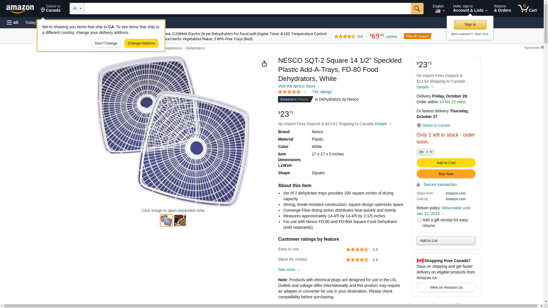 | Feature | Square Add-A-Trays For FD-80 Food Dehydrator/Jerky Maker - 2 Pack. |