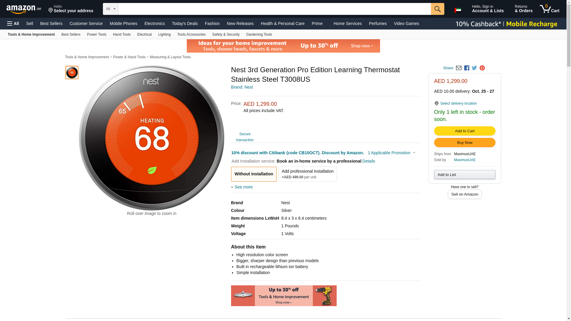 Nest T3008US Learning 3rd Generation Thermostat (Professional Version)