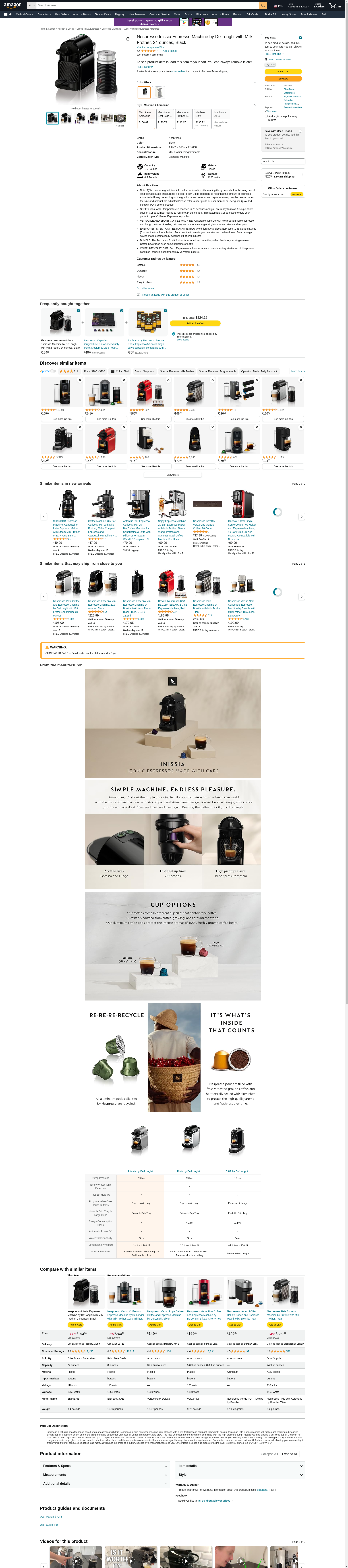Nespresso Inissia Espresso Machine by De'Longhi with Milk Frother, 24 ounces, Black