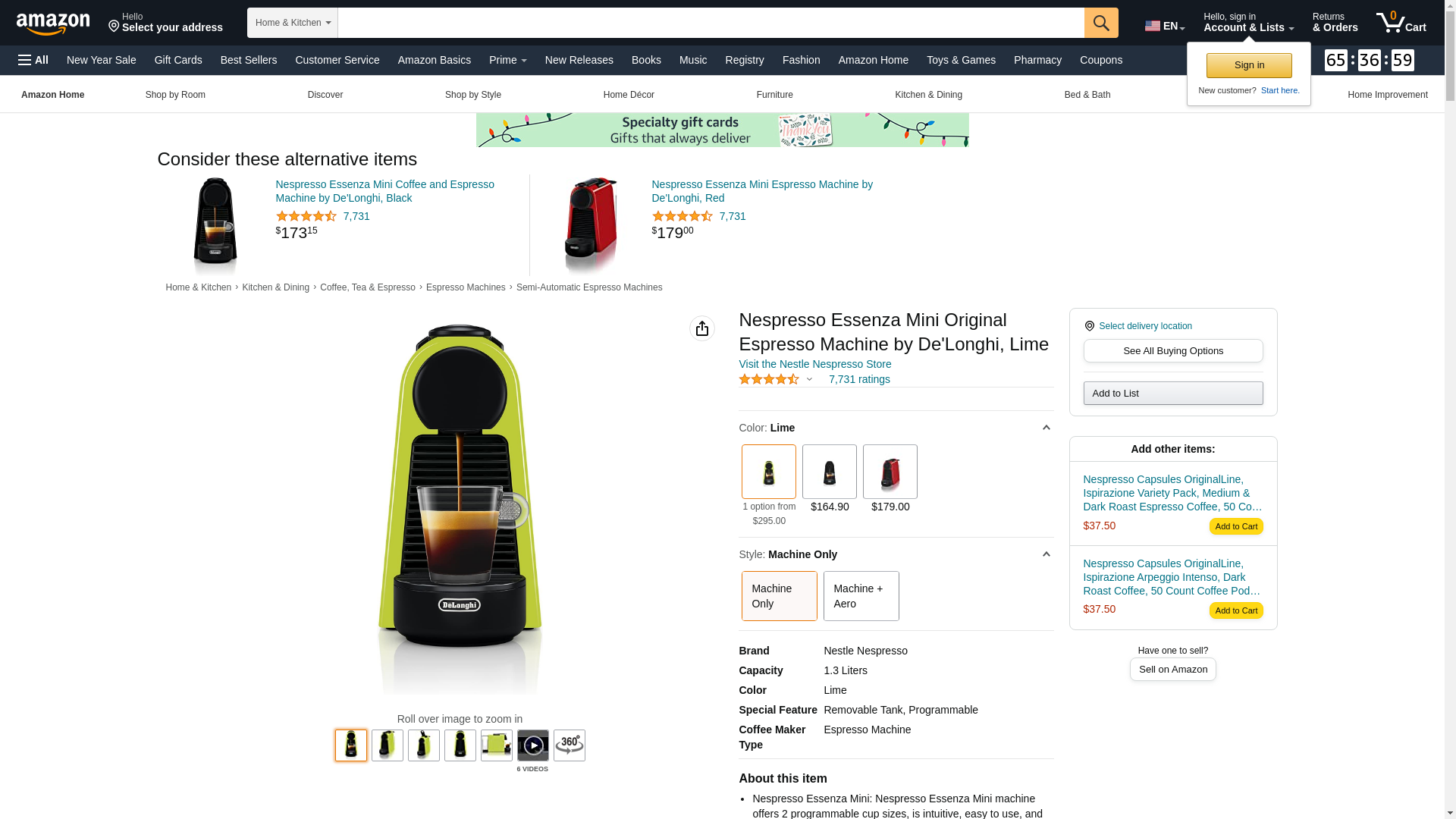 Nespresso Essenza Mini Original Espresso Machine by De'Longhi, 1.3 liters, Lime
