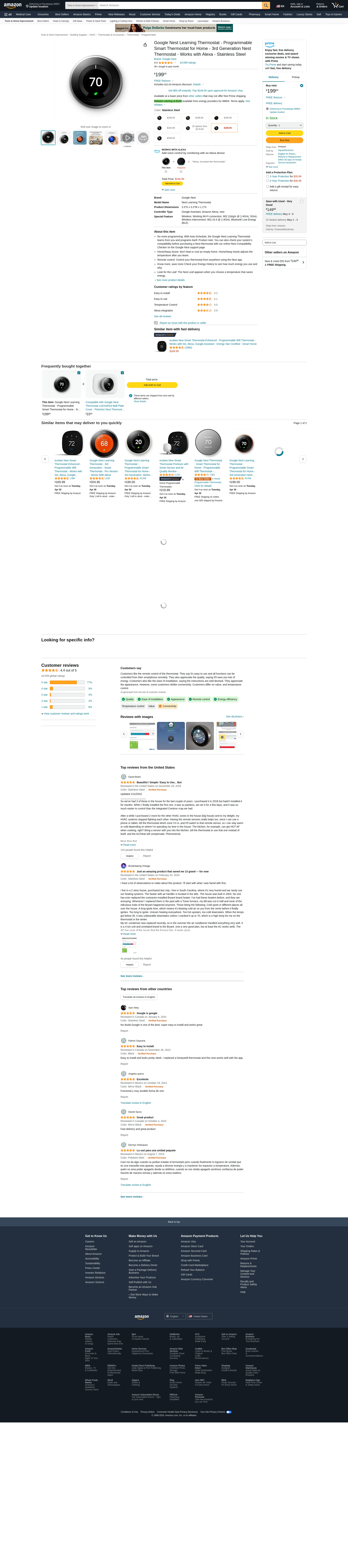 Google Nest Learning Thermostat - Programmable Smart Thermostat for Home - 3rd Generation Nest Thermostat - Works with Alexa - Stainless Steel