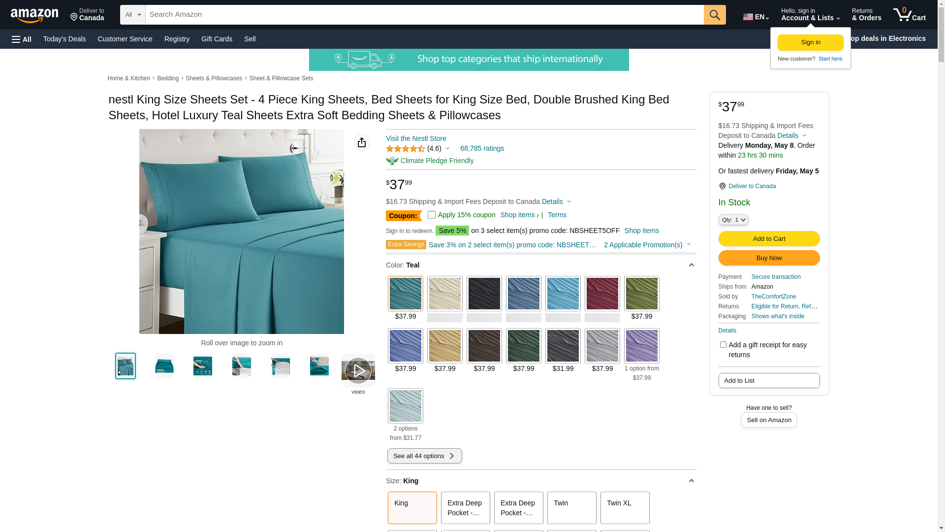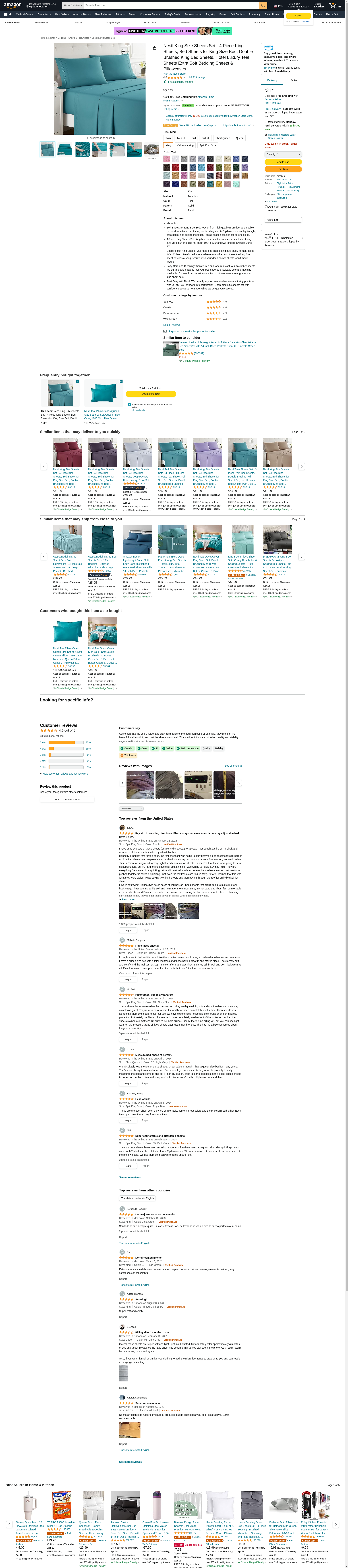 Buy Nestl King Size Sheets Set - 4 Piece King Sheets, Bed Sheets for King Size Bed, Double Brushed King Bed Sheets, Hotel Luxury Teal Sheets Extra Soft Bedding Sheets & Pillowcases: Sheet & Pillowcase Sets - Amazon.com ? FREE DELIVERY possible on eligible purchases