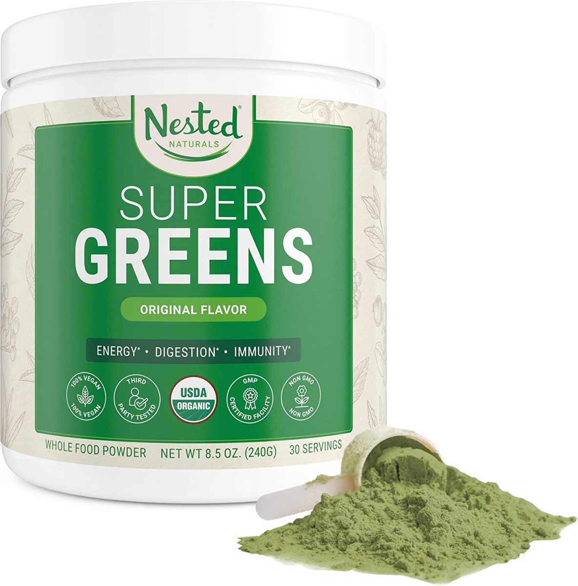 Nested Naturals SUPER-GREENS Super Greens Veggie Greens Superfood - 20 Organic Ingredients - Non-Gmo No Soy
