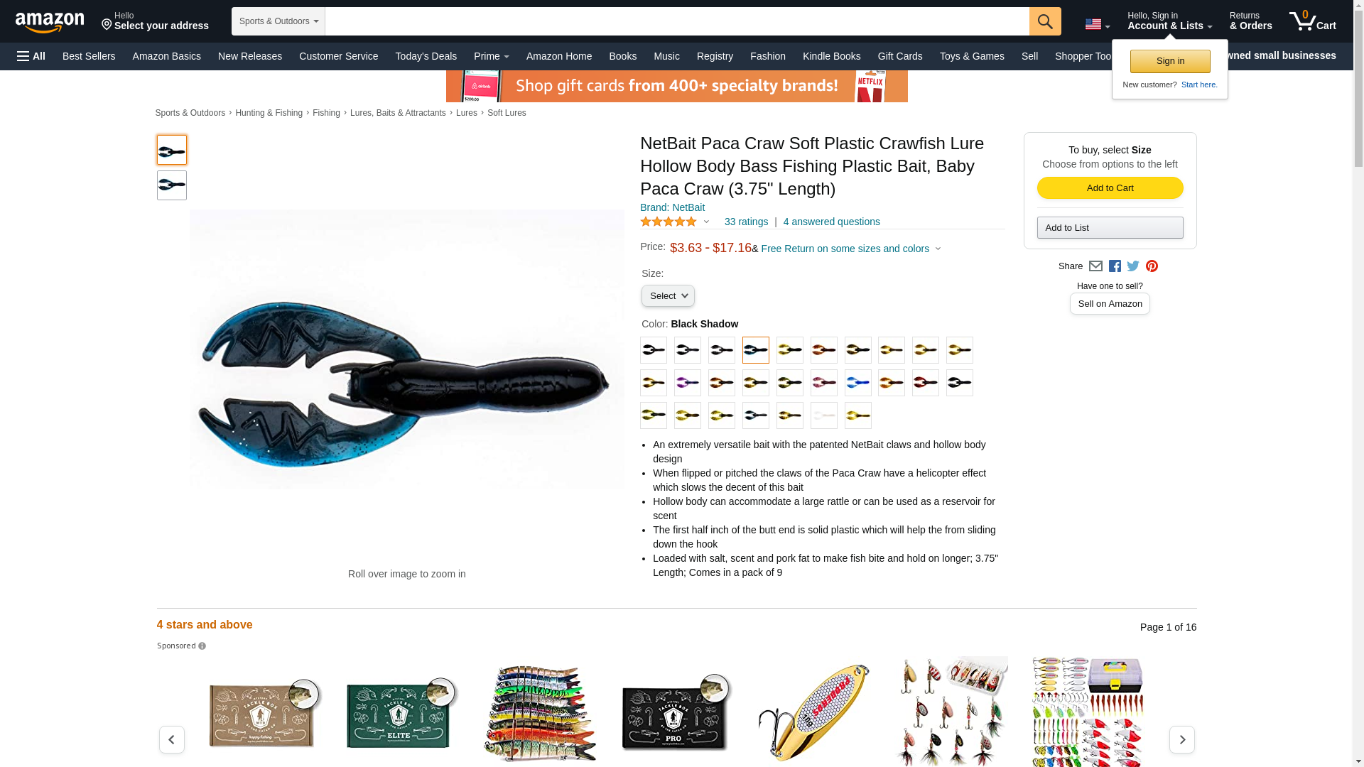 NetBait Fishing Baby Paca Craw Bait (Black Shadow)