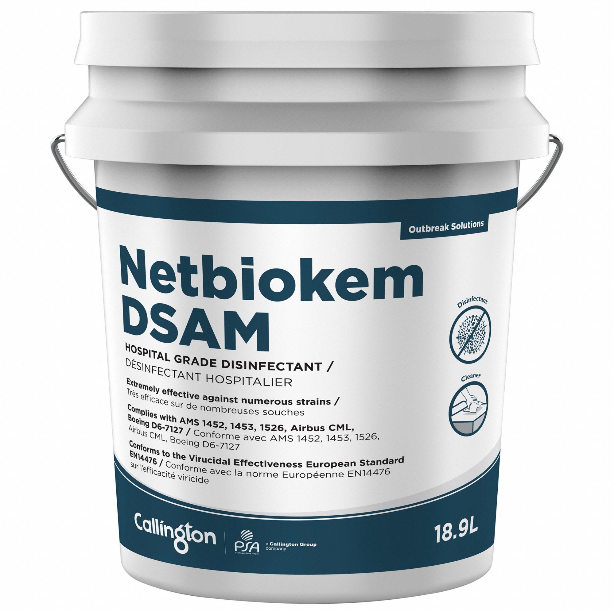 As an Amazon Associate, we earn from qualifying purchases. SURFACE DISINFECTANT, RTU, 18.9L NETBIOKEM DSAM . 9180/51/US Gallery Attributes Brand name, Manufacturer name, ManufacturerNETBIOKEM DSAM Attribute00None Attribute01Ready to Use Attribute02Liquid Attribute03, qtyInStock0 Attribute04Quat Attribute05N Attribute06Health Canada Attribute07Conforms to Virucidal Effectiveness European Standard EN 14476: Ready to use, non-rinsing formulation: Kills 99.99% of most harmful bacteria, fungi and viruses: Complies with AMS 1453, Airbus CML, Boeing D6-7127: Conforms to all European Norms EN Standards, Non-flammable and non-toxic formulation: Suitable for all transport, commercial, industrial, health services, military and any essential services industry: Good performance in the presence of organic material or soil: Can be applied by spray, or by microdiffusion with an Ultra Low Volume (ULV) fogging machine AttributeKey00Environmental Claim AttributeKey01Ready to Use/Concentrated AttributeKey02Cleaner Form AttributeKey03VOC Content AttributeKey04Primary Chemical AttributeKey05Fragrance AttributeKey06Standards AttributeKey07Features Extra Product NameSURFACE DISINFECTANT, RTU, 18.9L UNSPSC42281604 Weight45.0 WeightUnitlbs moq, multiple, tierMinQty11 MPN9180/51/US originalCurrency{'currency': 'CAD', 'tierPrice1': '161.19'} SKUCGT9180/51/US tierPrice1116.99266913999999 Distributor offers SellerSKUMOQIn stockMultiplePrices grainger.caCGT9180/51/US111 @ $116.99