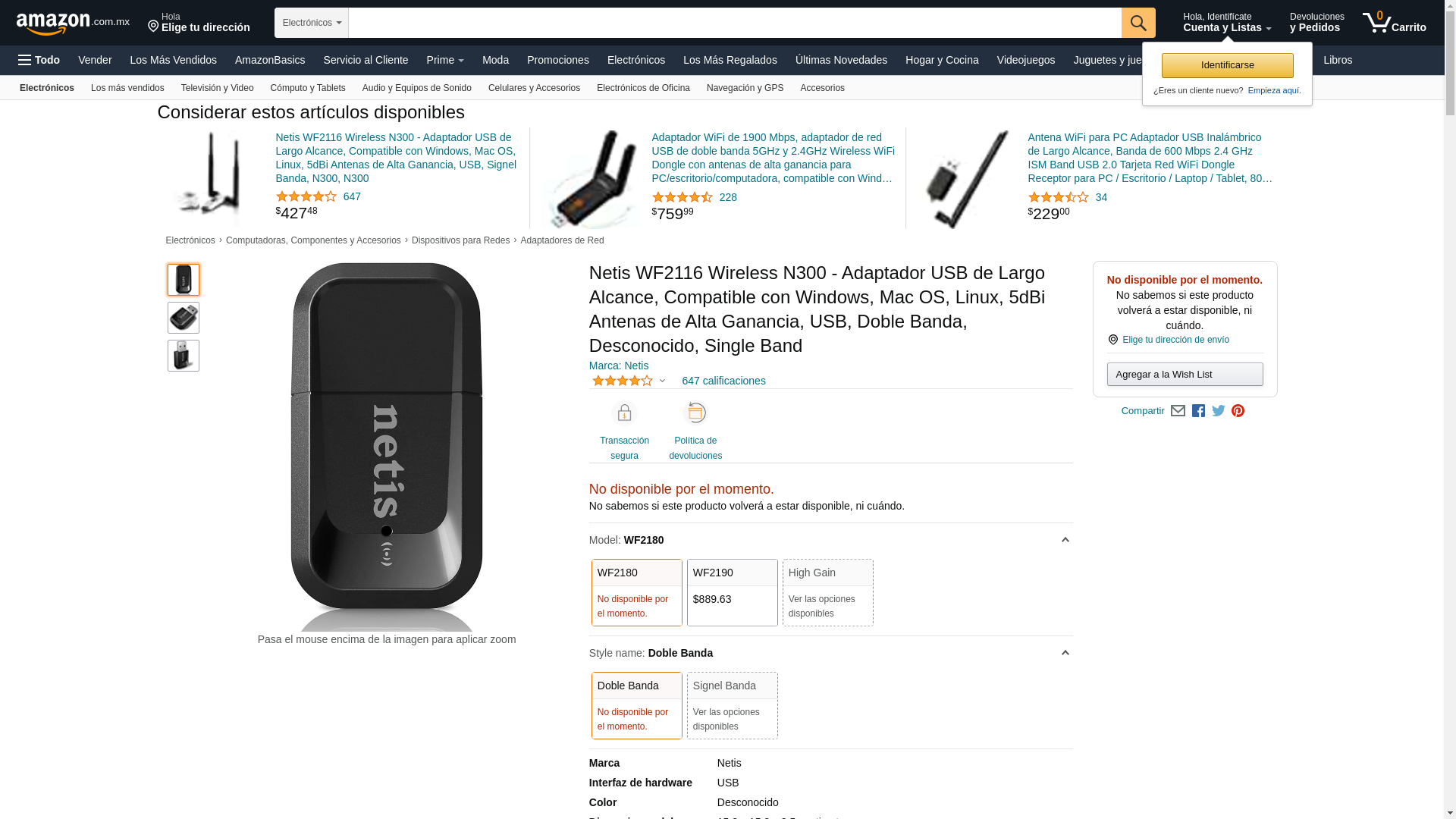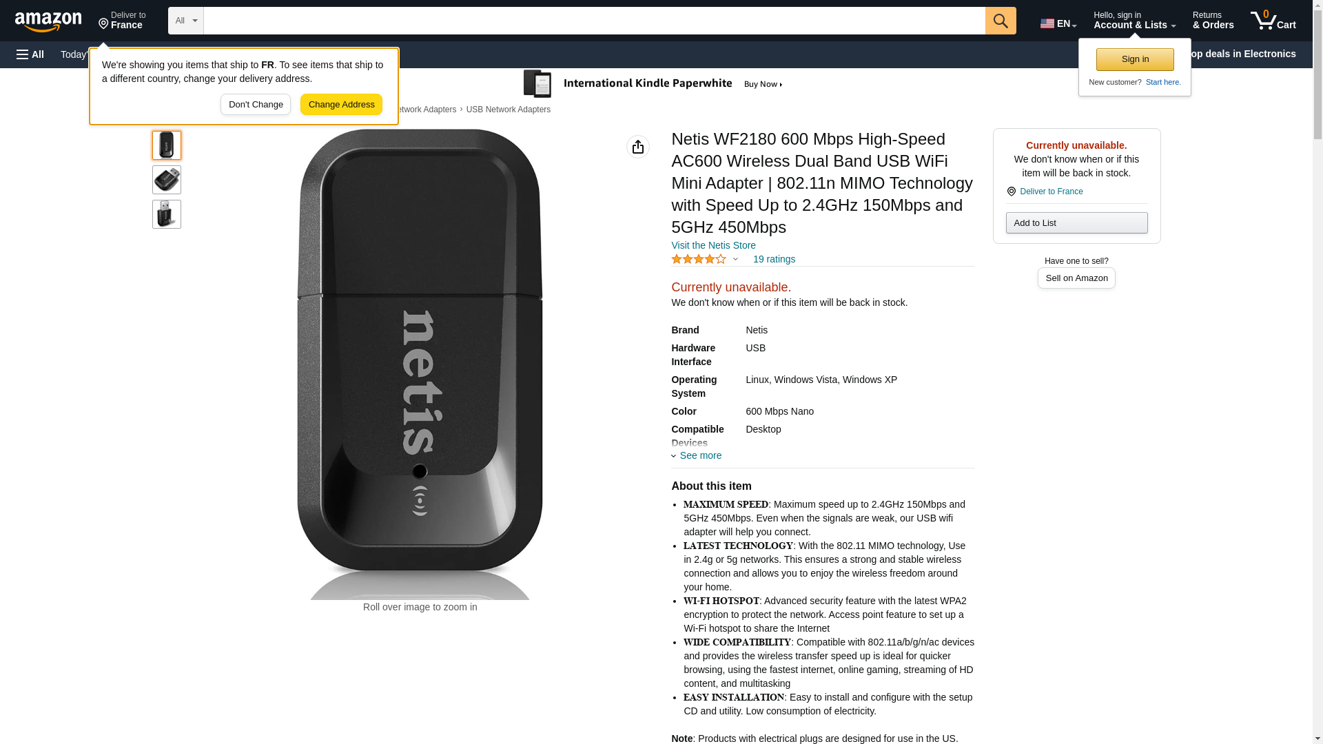AC600 Wireless Dual Band USB Adapter, WF2180