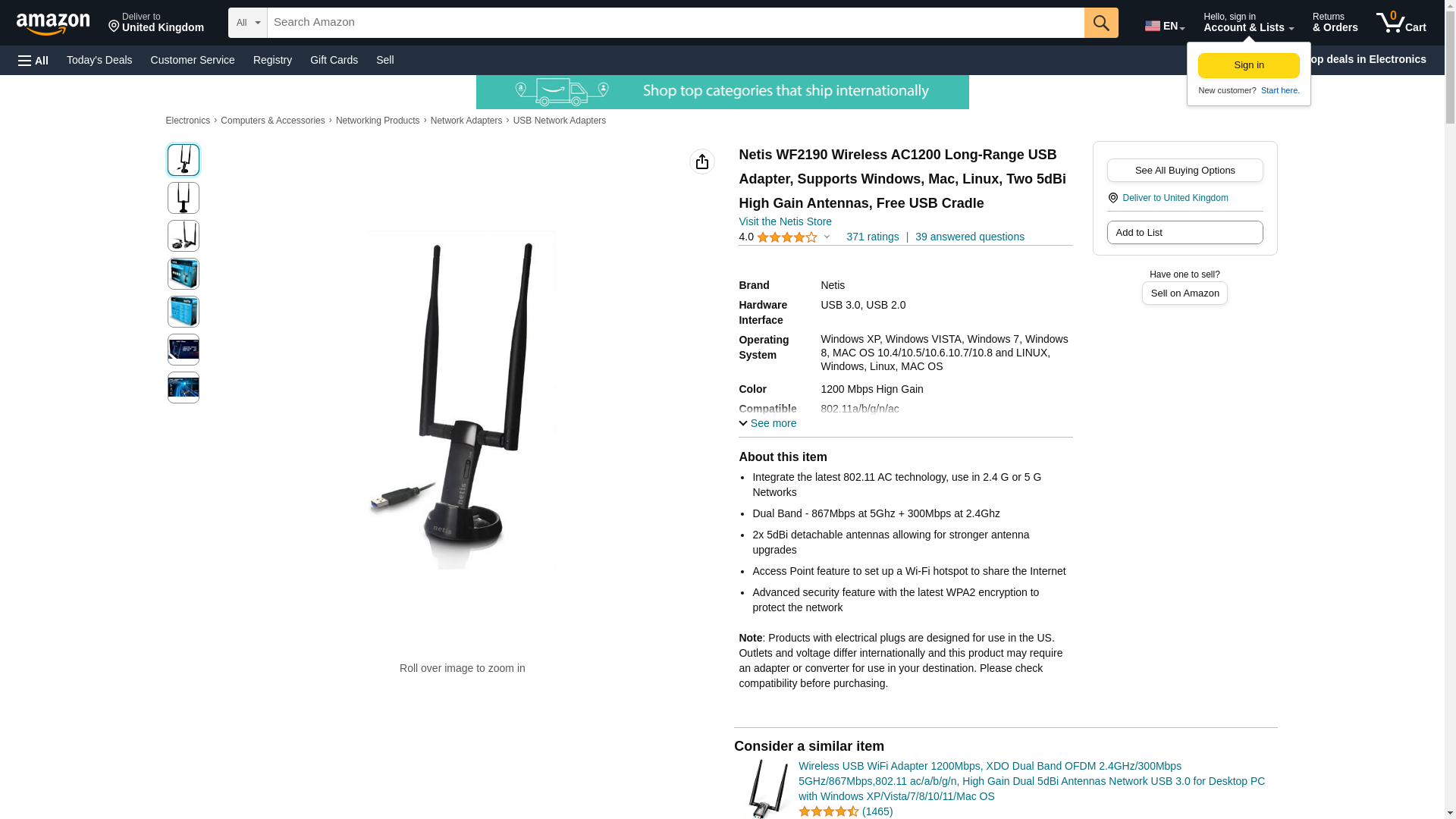 Netis WF2190 Wireless AC1200 Long-Range USB Adapter, Supports Windows, Mac, Linux, Two 5dBi High Gain Antennas, Free USB Cradle