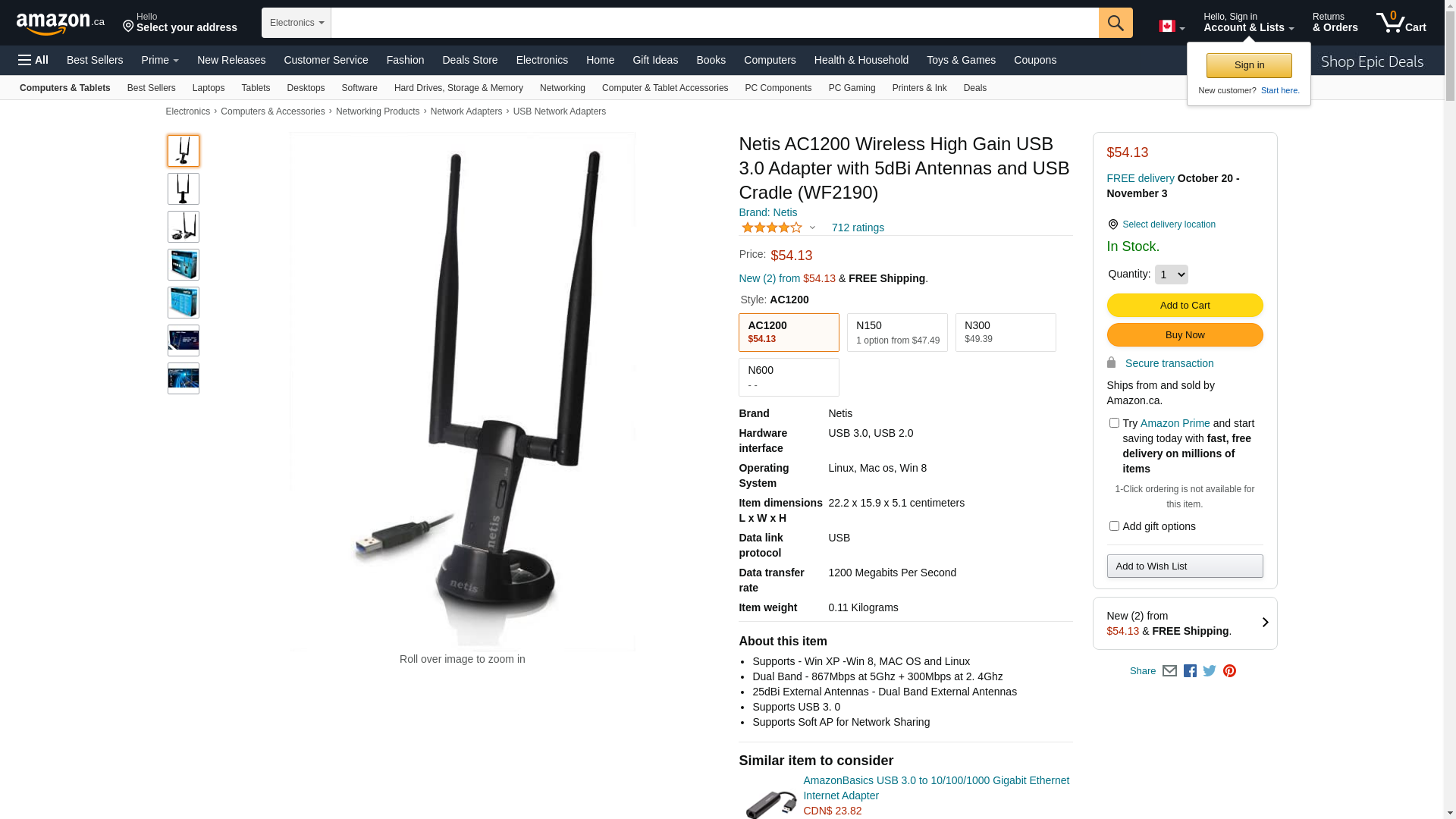 Netis Wf2190 Ac1200 Wireless Dual Band USB Adapter w/ 2X 5dbi Antennas