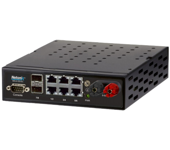 Netonix WS-8-150-DC network switch Managed Gigabit Ethernet is designed to connect directly to a battery bank rather than a power source