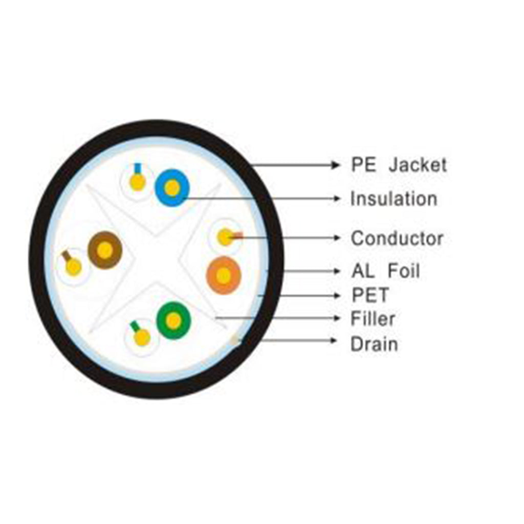 This NetStrand 1000ft Cat6E Bulk Cable is Shielded 550MHz, 23AWG FTP Direct Burial Waterproof Cable and it is perfect for any networking application.