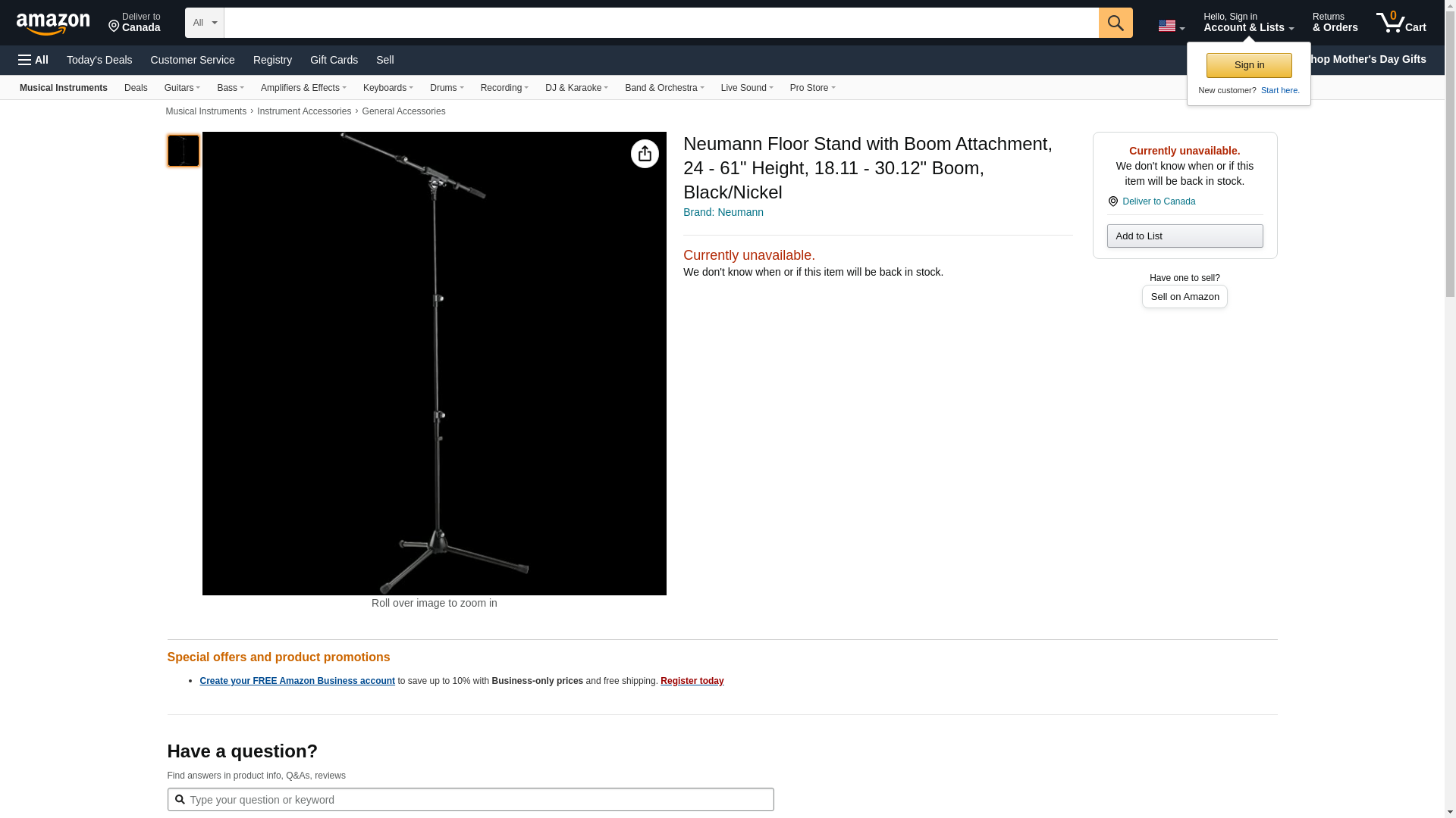Neumann Floor Stand with Boom Attachment, 24 - 61" Height, 18.11 - 30.12" Boom, Black/Nickel