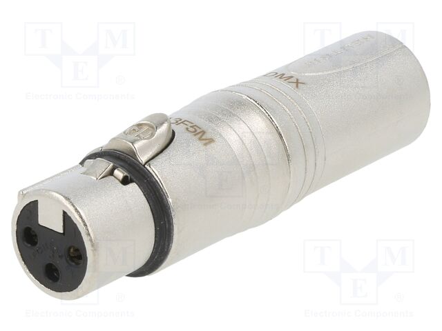 Neutrik dmx adaptor 3 pin xlrm - 5 pin xlrf - xlr 3 pole female to xlr 5 pole male for lighting (dmx) applications.
