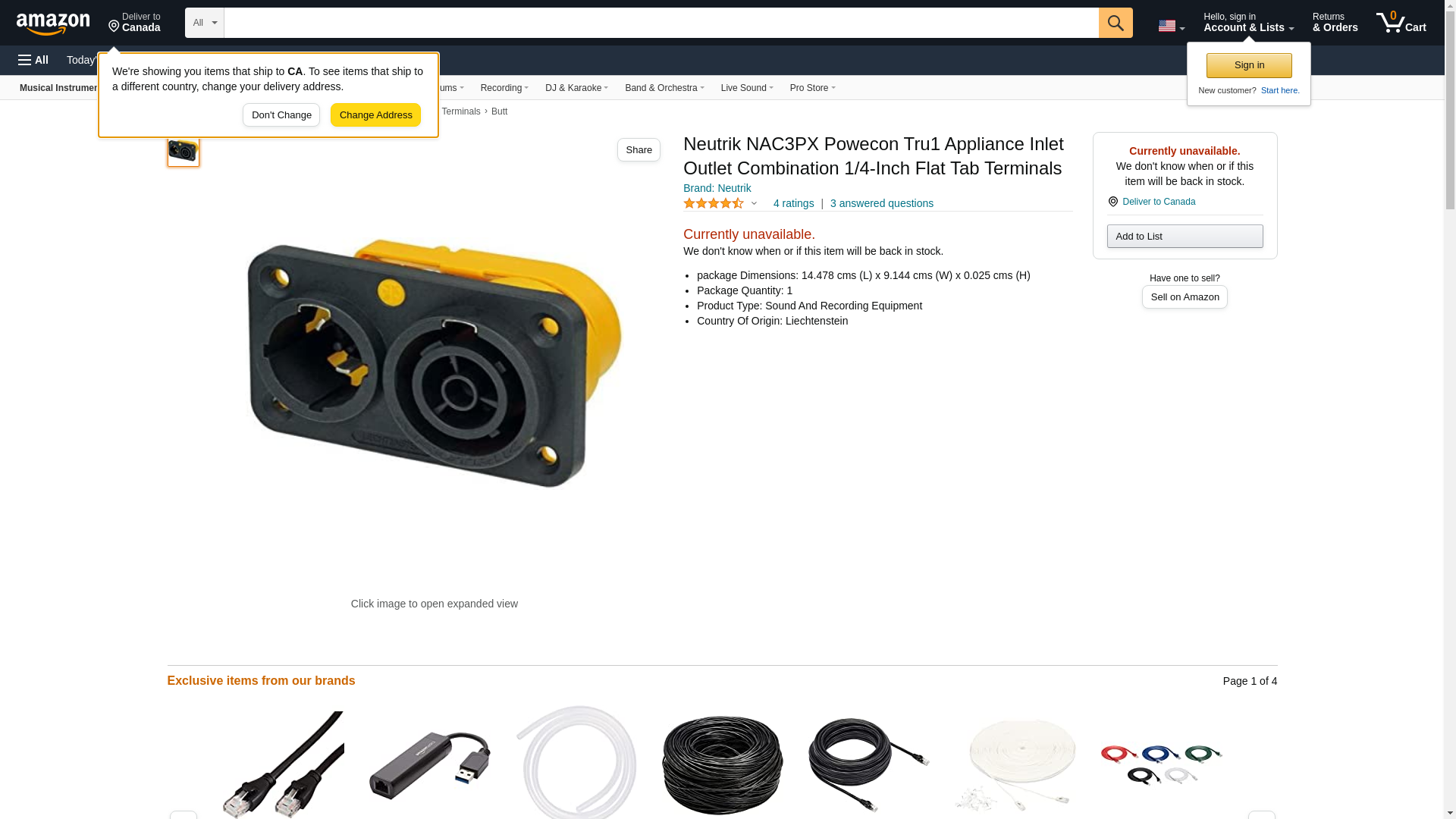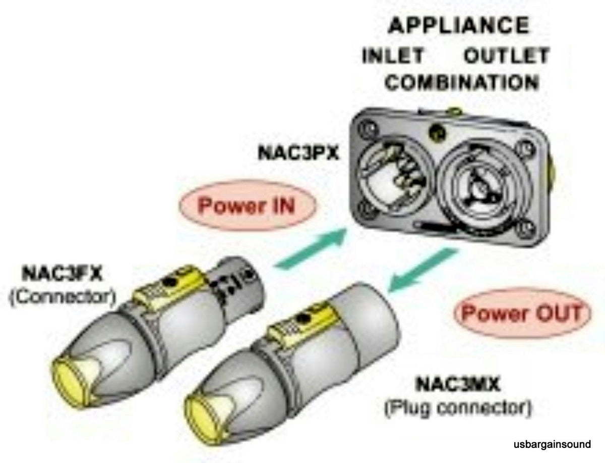Neutrik NAC3PX Powecon Tru1 Appliance Inlet Outlet Combination 1/4-Inch Flat Tab Terminals