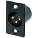 3 pole male receptacle, solder contacts, black metal housing, gold contacts Smallest available traditional style metal panel mount connector with large solder cups for ease hard wiring. Features & Benefits Smallest available hard wiring receptacles with large solder cups Compatible with switchcraft D*M, D*F; Cannon XLB2*31, XLB2*32
