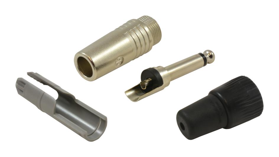 2 pole 1/4" professional phone plug, Nickel housing, Nickel contacts Professional phone plug with robust metal shell and chuck type strain relief. Features & Benefits Rugged diecast metal shell Chuck type strain relief for optimum cable protection Precision machined one-piece contacts - avoid hook up of tip contact Meets all prevailing standards