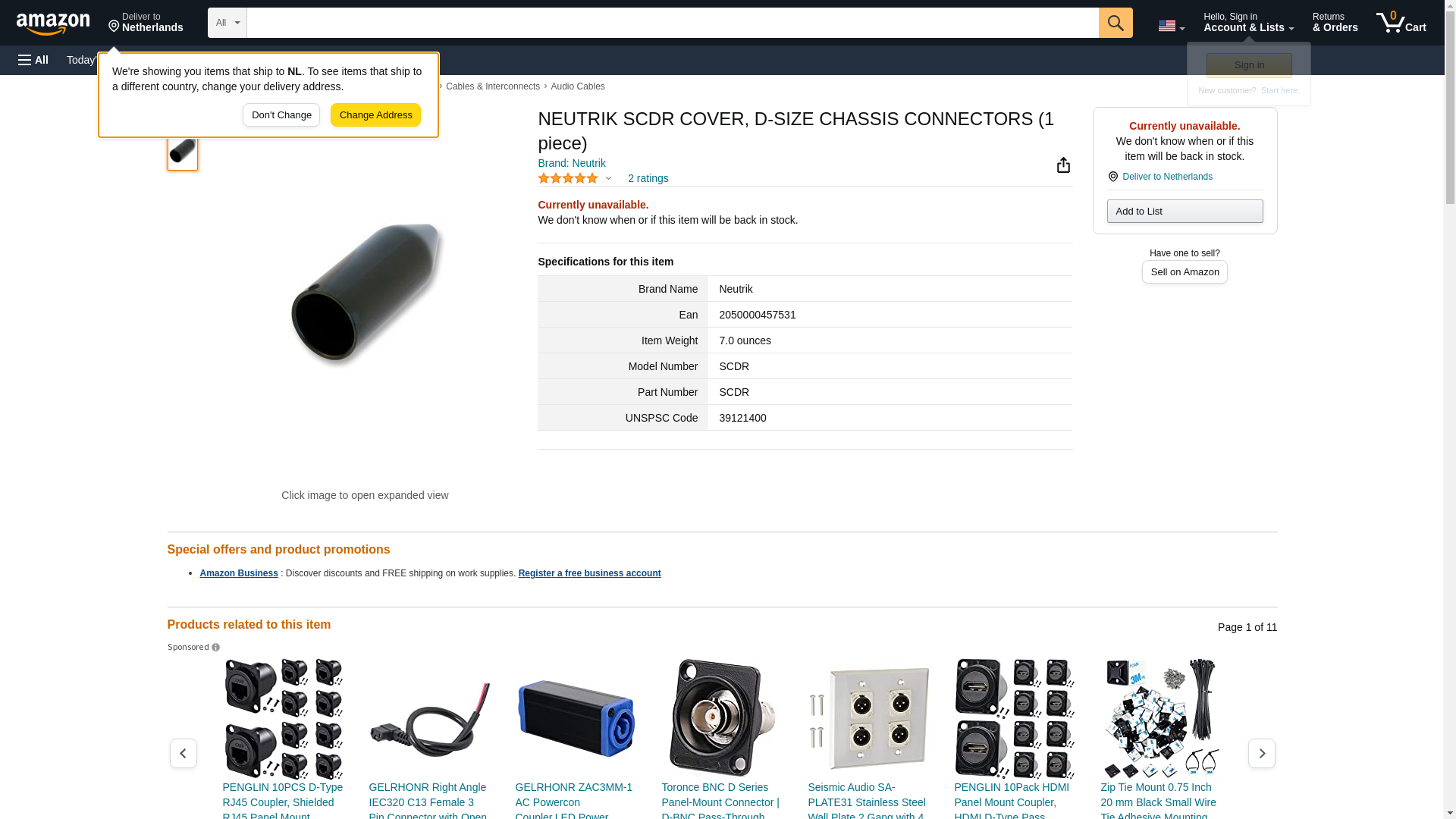 NEUTRIK - SCDR - COVER; D-SIZE CHASSIS CONNECTORS