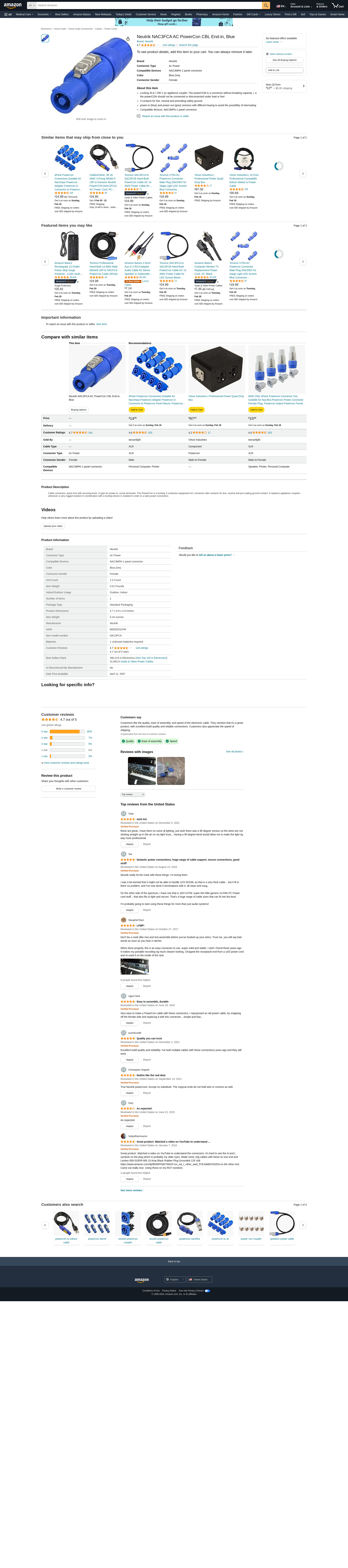 8 Neutrik Blue Power in NAC3FCA Series PowerCon Locking AC Connector Cable Plug