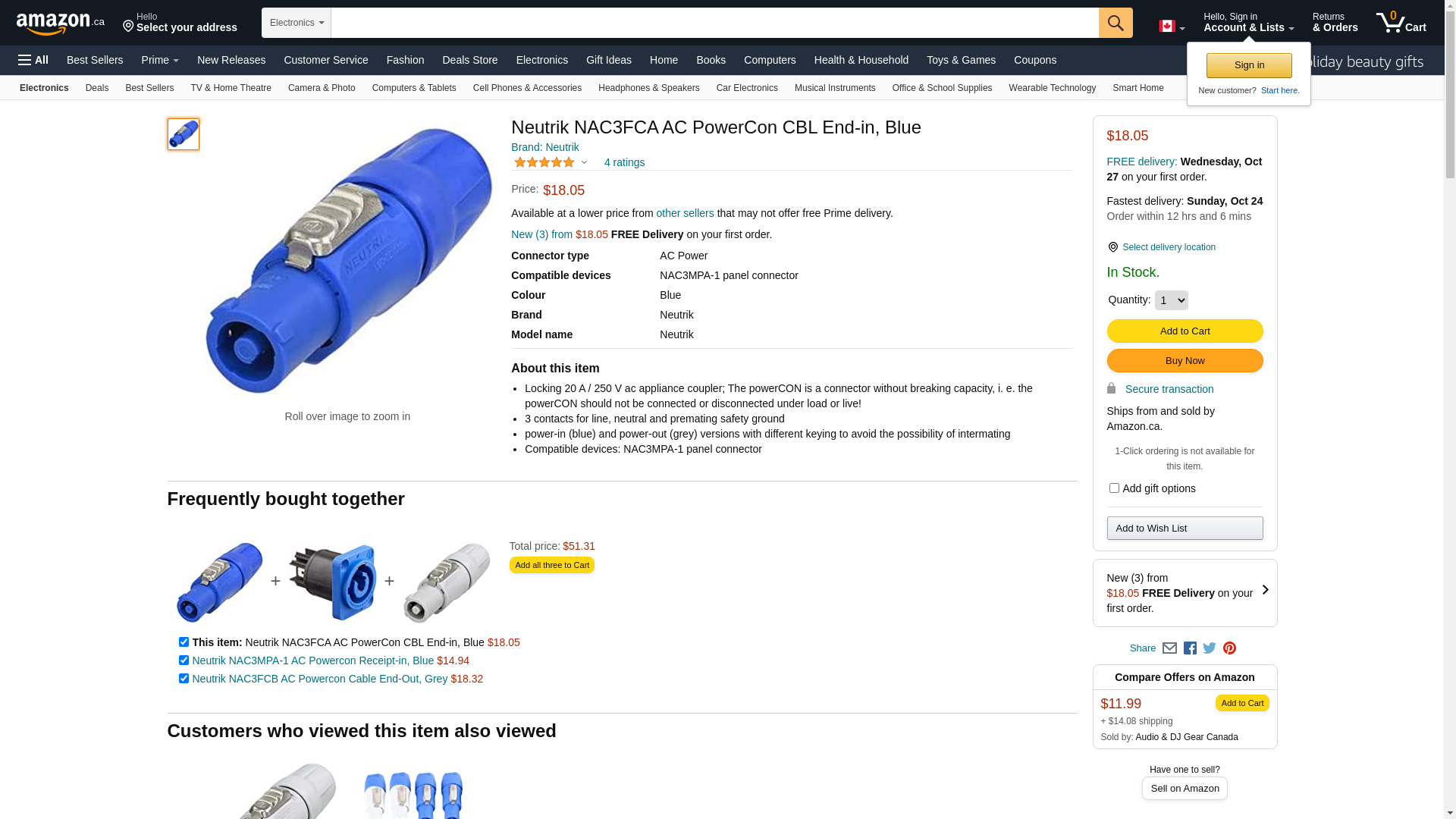 NEUTRIKÂ NAC3FCA, Powercon Input Plug