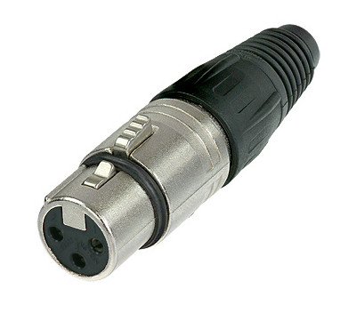 - 3 pole female cable connector with Nickel housing and silver contacts.