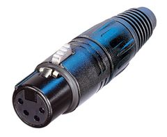 NC4FX-B, 4 Pole Female Cable Connector with Black Metal housing and Gold Contacts. (5 Items)