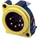 Neutrik NC5MAH 5 pole male XLR receptacle grounding: separate ground 5 pole male XLR receptacle, grounding: separate ground contact to mating connector shell and front panel, horizontal PCB mount, color coding possible Features & Benefits Smallest XLR receptacles, highest packing density Plastic housing, steel latch lock Polished contact areas and hard gold plating Housing flammability UL94HB