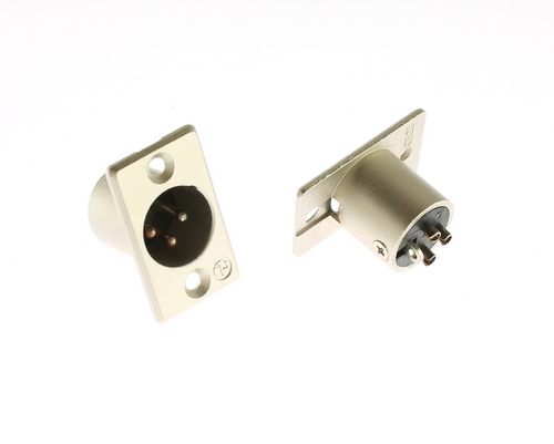3 pole male receptacle, solder contacts, Nickel housing, silver contacts Smallest available traditional style metal panel mount connector with large solder cups for ease hard wiring. Features & Benefits Smallest available hard wiring receptacles with large solder cups Compatible with switchcraft D*M, D*F; Cannon XLB2*31, XLB2*32