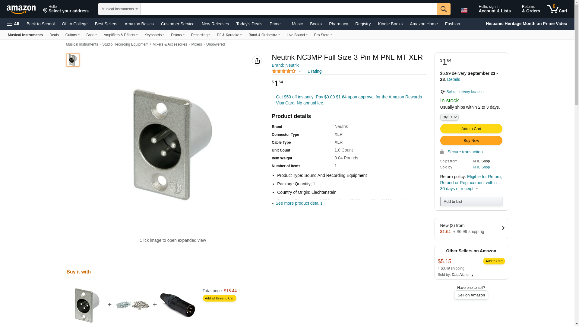 | MCM Electronics | NC3MP | 1 | -2 | 1 | 1 @ $3.75, 10 @ $3.35 |