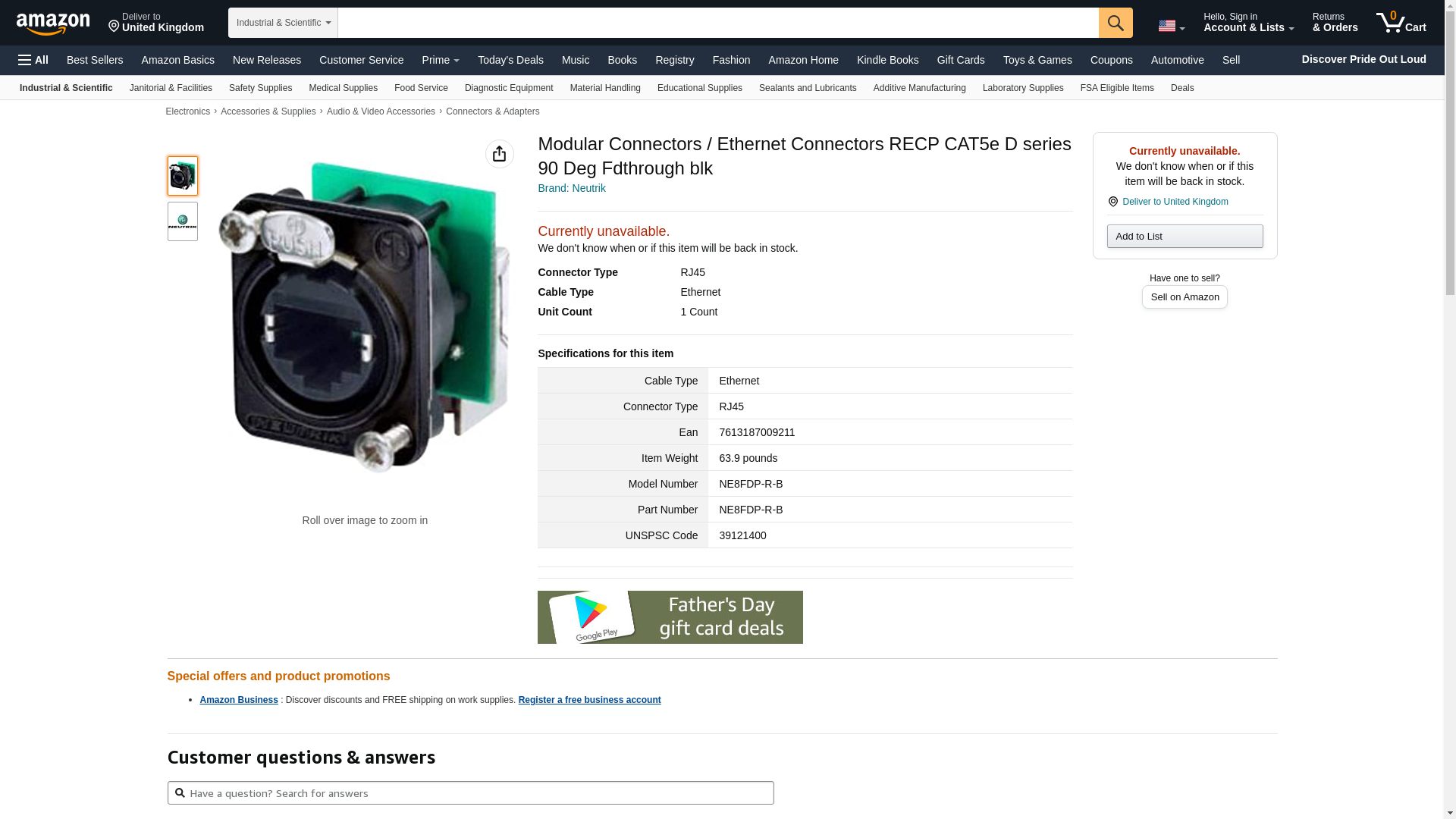 Neutrik - NE8FDP-R-B - RJ54 Receptacle, Rt Angle, Feed-Thru, Chassis, CAT5e, Black, etherCON D Series - Allied Electronics & Automation, part of RS Group